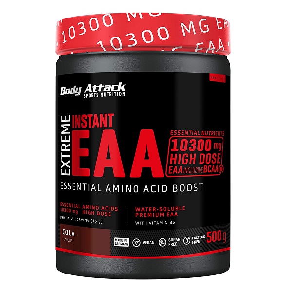 اکستریم اینستنت ای ای ای بادی تک Body Attack Extreme Instant EAA می تواند به ایجاد به نتایج تمرین و عملکرد کمک کند. درست مانند BCAA ها، زمانی که EAA ها به عنوان مکمل استفاده می شوند، اجزای کلیدی را برای افزایش سنتز پروتئین ماهیچه ای برای مقابله با تجزیه عضلانی ناشی از ورزش شدید فراهم می کنند. برای سرعت بخشیدن به دوره ریکاوری و بهبود عملکرد خود در طول تمرین بعدی می توانید از این مکمل استفاده کنید.
