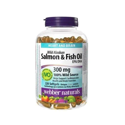 روغن ماهی سالمون آلاسکا آزاد وبر نچرالز ماهی سالمون وحشی آلاسکا و روغن ماهی را برای ایجاد فرمولی متنوع در منابع امگا 3 ترکیب کرده است. امگا 3 به حمایت از سلامت قلب و عروق و عملکرد مغز، کاهش تری گلیسیرید سرم و حمایت ضد التهابی کمک می کند. همچنین، همراه با درمان های معمولی، امگا 3 به کاهش درد آرتریت روماتوئید در بزرگسالان نیز کمک می کند.