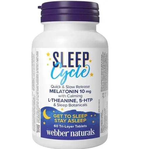 مکمل خواب اسلیپ سایکل وبر نچرالز 60 عدد Webber Naturals Sleep Cycle محصولی مدرن و مؤثر از برند معتبر کانادایی Webber Naturals است که با فرمول سهلایه (tri‑layer)، ترکیبی از هورمون ملاتونین، اسید آمینه آرامبخش ال‑تئانین، پیشساز سروتونین (5‑HTP) و عصارههای گیاهی سنتی را در اختیار مصرفکننده قرار میدهد. این مکمل بهطور خاص برای بهبود کیفیت خواب، تنظیم ساعت بدن (ریتم شبانهروزی) و کاهش اختلالات ناشی از جابهجایی زمانی یا شیفت کاری طراحی شده است.