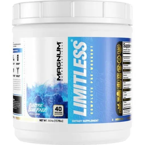 مکمل لیمیت لس مگنوم یک پودر قبل از ورزش است که مواد تشکیل دهنده قدرتمندی در خود دارد. این محصول به گونه ای طراحی شده است که می تواند انرژی بدن شما را برای تمرینات ورزشی افزایش دهد، عضلات تان را تقویت نماید، مقاومت تان را برای تمرینات ورزشی بیشتر کند و قدرت تان را بیشتر کند. به کمک این مکمل می توانید عضلات پرتری داشته باشید و تمرکز ذهنی تان را به بهترین شکل ممکن تقویت کنید.