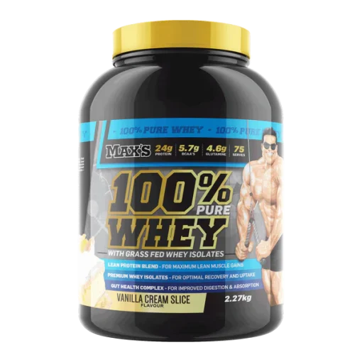 پروتئین وی مکسس MAX’s 100% WHEY Protein یک مکمل پروتئینی با کیفیت بالا است که برای کمک به رشد عضلانی، بهبود ریکاوری پس از تمرینات شدید و افزایش توده عضلانی بدون چربی ساخته شده است. این محصول حاوی ترکیبی از دو نوع پروتئین وی یعنی وی پروتئین ایزوله (WPI) و وی پروتئین کنسانتره (WPC) است که هر کدام دارای ویژگی‌ها و مزایای خاص خود هستند که در ادامه مورد بحث قرار می دهیم.